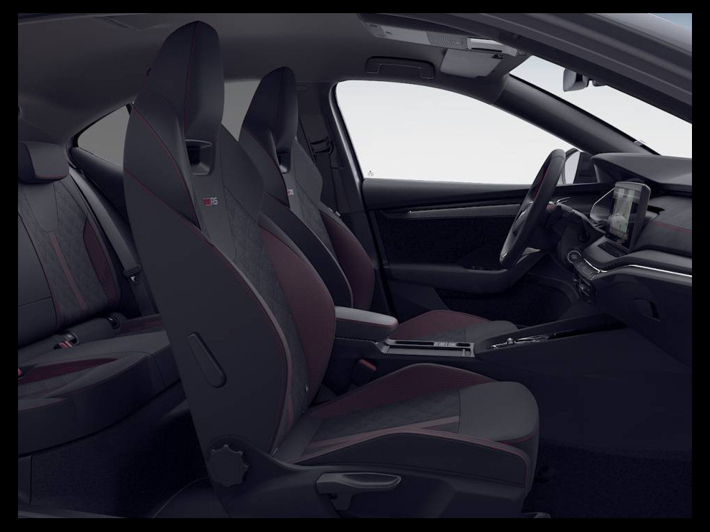 Comet 18" černá; Antikolizní asistent; Infotainment Columbus 10" s navigací; Front Assist s upozorněním a zabržděním při hrozící kolizi; Rozpoznání únavy řidiče; 3x USB-C (2x vzadu, 1x u vnitřního zpětného zrcátka); Příprava pro služby ŠKODA Connect L; Asistent rozjezdu do kopce; DAB - digitální radiopříjem; Sada na opravu pneumatik; Elektrické ovládání oken vpředu a vzadu; 3x ISOFIX, 2x Top Tether; 12 V zásuvka v zavazadlovém prostoru; 8x airbag - středový, kolenní u řidiče, 2x čelní, 2x boční vpředu, 2x hlavové); Kontrola tlaku v pneumatikách; Tísňové volání eCall+; Elektronická parkovací brzda s funkcí Auto Hold; Světelný a dešťový senzor; Vyhřívané trysky ostřikovačů čelního skla; 8 reproduktorů; Dvouzónový Climatronic; Volba jízdního režimu; SmartLink; Digitální asistentka Laura; El. sklápění pro vnější zp. zrcátka s aut. stmíváním na straně řidiče; Odjištění zadních opěradel ze zav. prostoru - mechanicky; Vyhřívání předních sedadel; Vyhřívané čelní sklo; Adaptivní tempomat (ACC); Parkovací senzory vpředu a vzadu; Sunset; Matrix-LED přední světlomety; Progresivní řízení; Virtuální pedál; Ostřikovače světlometů; Potah palubní desky s červeným prošitím; Rozpoznání dopravních značek; KESSY s alarmem - bezklíčové zamykání a startování; TOP LED zadní světla s animovanými ukazateli směru; Sportovní nárazníky RS; Černě lakované doplňky karoserie; Loketní opěrka vpředu s Jumbo Boxem; Virtuální kokpit 10"; Textilní koberce vpředu a vzadu; Ambientní LED osvětlení; Automatické stmívání pro vnitřní zpětné zrcátko; Sportovní kryty pedálů; Sportovní multifunkční kožený volant pro DSG s pádly; Deštník ve dveřích u řidiče a mnohé další,...